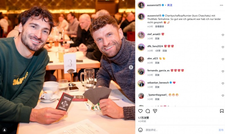 1月10日讯 已经退役的德国足坛名宿胡梅尔斯在今日通过社媒晒出和老友托马斯·穆勒的合照。